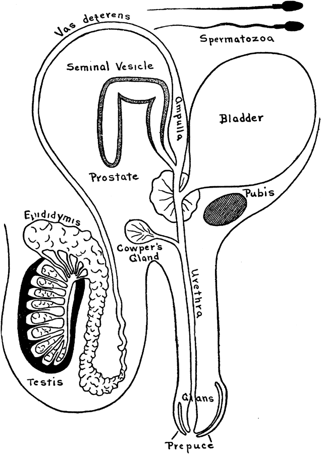 [146]An intense and continuous desire for sexual intercourse will, without question, cause an active secretion on the part of the testes, an increased secretion on the part of the seminal vesicles and an active secretion on the part of the prostate gland and of Cowper's glands. The secretion from Cowper's glands will make its way along the urethra and appear at the opening of that duct, probably soiling the linen of the subject. The accumulated semen from the other glands will tend rather to aggravate than allay the sexual desires. Such a condition of the sexual apparatus is likely to cause a nocturnal emission, relieving this tension and emptying the gorged gland ducts. If the nocturnal emission does not occur, the sexual desires are certain to return to occupy the waking hours more or less completely. If the nocturnal emission does occur, it will carry away not alone the vesicular secretion, but also more or less of the nascent spermatozoa and other constituents of the vital fluid. Seasons of intense and prolonged sexual excitement are in a high degree inimical to continence, and even though the subject does not fully submit to his inclination, his nocturnal emissions, which are likely to come frequently, carry away the product of the testicular secretion, thereby depleting to a certain extent, his virility. It is hardly necessary to urge the importance of resisting these onslaughts of sexual passion in their very incipiency.