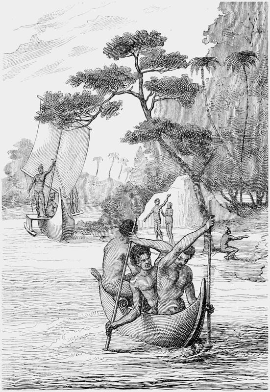 Le 1er février, il mit en mer une embarcation pour aller à la découverte d’un mouillage. Tandis qu’on attendait son retour, on aperçut un grand feu sur le rivage. Quelques vaisseaux espagnols ou français avaient-ils atterri en cet endroit? Faudrait-il livrer combat, pour se procurer l’eau et les vivres dont on avait besoin? Toutes les dispositions furent prises pendant la nuit; mais, au matin, aucun bâtiment n’était en vue. Déjà l’on se demandait si l’ennemi s’était retiré, lorsque l’arrivée de la chaloupe vint fixer toutes les incertitudes, en ramenant un homme vêtu de peaux de chèvres, à la figure encore plus sauvage que ses vêtements.